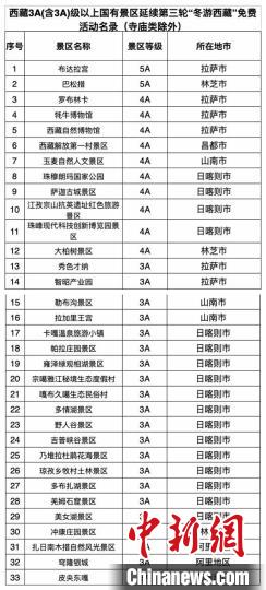 圖為西藏參與“冬游西藏”活動免費(fèi)景區(qū)名錄。西藏旅游景區(qū)協(xié)會籌備組供圖