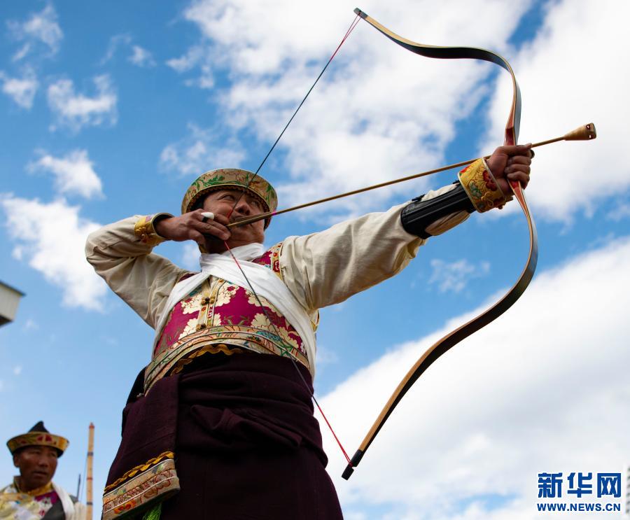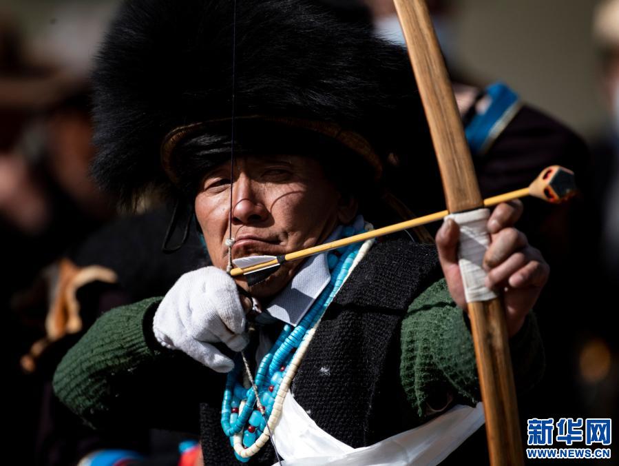 當(dāng)天是西藏林芝市工布新年大年初五,林芝市舉行盛大的響箭比賽慶祝新年,營(yíng)造健康祥和的節(jié)日氛圍?!肮げ柬懠辈卣Z(yǔ)稱“畢秀”,是西藏林芝特有的一項(xiàng)民間傳統(tǒng)體育競(jìng)賽,距今已有1500多年的歷史,被列入第二批西藏自治區(qū)非物質(zhì)文化遺產(chǎn)保護(hù)項(xiàng)目。工布響箭箭頭由一個(gè)刻有小孔的木質(zhì)圓錐體組成,箭離弦后在空中飛向目標(biāo)的過程中,空氣穿過小孔,發(fā)出尖利的嘯聲,“響箭”因此而得名。在賽場(chǎng)另一邊,掛著一張攔截響箭用的布簾,其前方懸掛一個(gè)三圈環(huán)形組成的皮質(zhì)靶心,射中后,靶心內(nèi)圈隨箭脫落。當(dāng)日,來自林芝的15支參賽隊(duì)和8支箭歌隊(duì),共260多名射箭愛好者齊聚一堂,展開了激烈角逐。