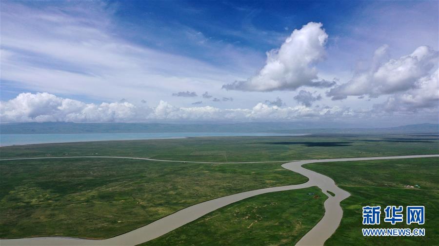 青海湖畔風(fēng)光(無人機照片)。新華社記者 張宏祥 攝
