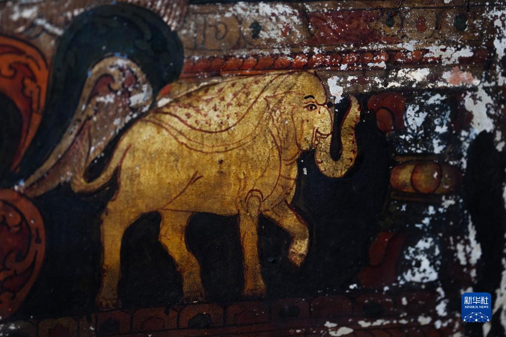 這是5月26日拍攝的皮央石窟壁畫中的大象像。新華社記者 費(fèi)茂華 攝