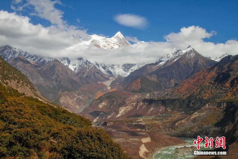 南迦巴瓦峰位于西藏自治區(qū)林芝市,海拔7782米。是西藏林芝地區(qū)最高峰,屬于喜馬拉雅山脈。南迦巴瓦峰山形獨(dú)特,因其巨大的三角形峰體終年積雪,云霧繚繞,所以也被稱為“羞女峰”。雅魯藏布大峽谷位于南迦巴瓦峰腳下,它是世界上最大、最深的峽谷。圖為11月14日,從雅魯藏布大峽谷旅游景區(qū)內(nèi)觀賞南迦巴瓦峰景色。貢確 攝