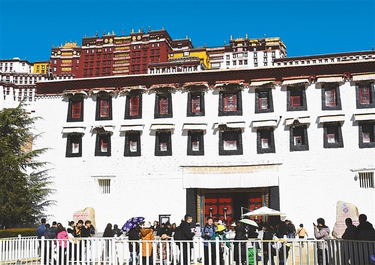 2023年11月1日至2024年3月15日為“冬游西藏”市場促進活動時間,在此期間,除寺廟景區(qū)外,西藏自治區(qū)所有A級景區(qū)免費游覽?;顒訂右詠?,布達拉宮作為游客來藏旅游的首選之地,日均接待量達4000余人次。 圖為游客正在有序進入布達拉宮。 記者 洛桑 攝