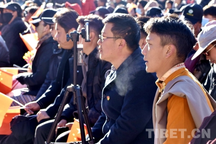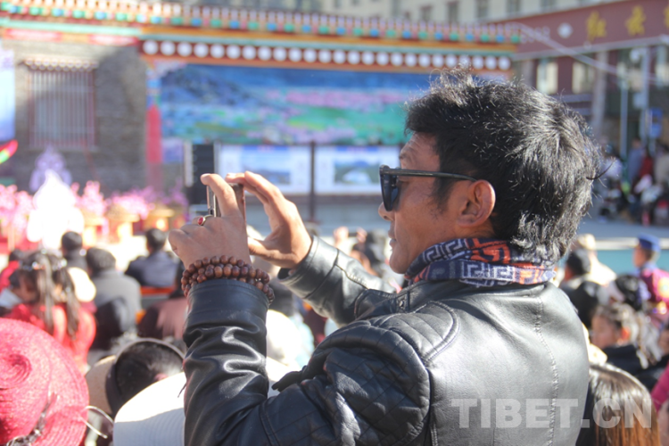 圖為開(kāi)幕式現(xiàn)場(chǎng)市民在直播 攝影:次旦拉姆