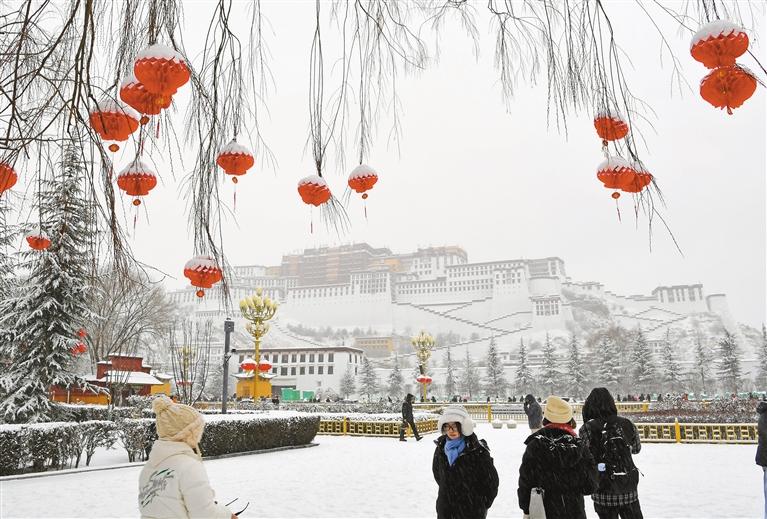 1月18日是農(nóng)歷臘八節(jié),拉薩也迎來了新年之后的第二場大雪,古城處處銀裝素裹,布達拉宮在白雪映襯下,顯得格外圣潔莊嚴(yán)。