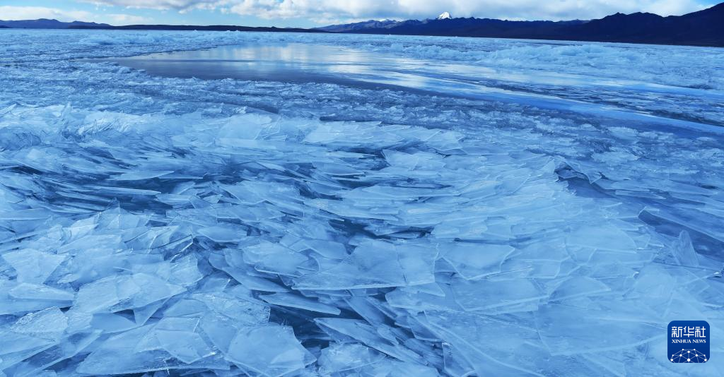 瑪旁雍錯湖面上的冰像碎玻璃一樣透亮(1月29日攝)。新華社記者 關(guān)明輝 攝 ??