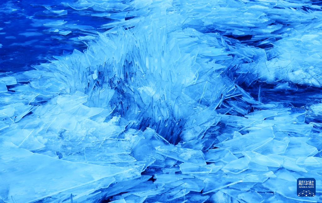 瑪旁雍錯湖面上的冰堆積在一起,呈現(xiàn)出各式各樣的造型(1月29日攝)。新華社記者 關(guān)明輝 攝 ??
