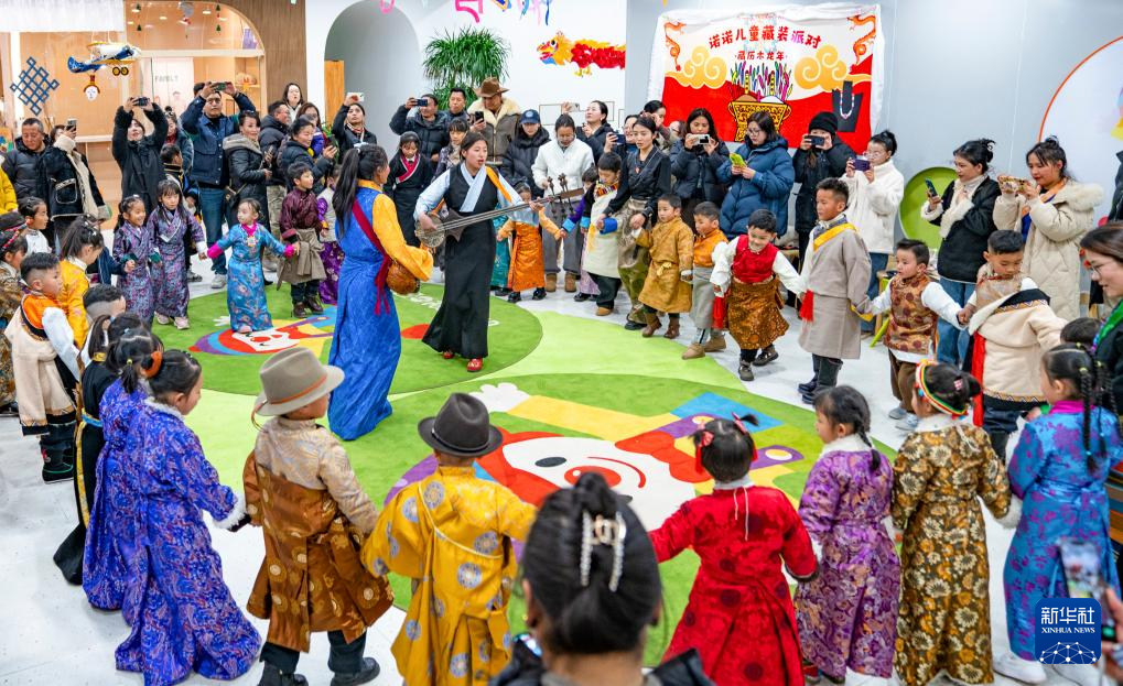 2月3日,手偶表演演員在拉薩的兒童藏裝派對(duì)上和孩子們互動(dòng)。新華社記者 丁增尼達(dá) 攝