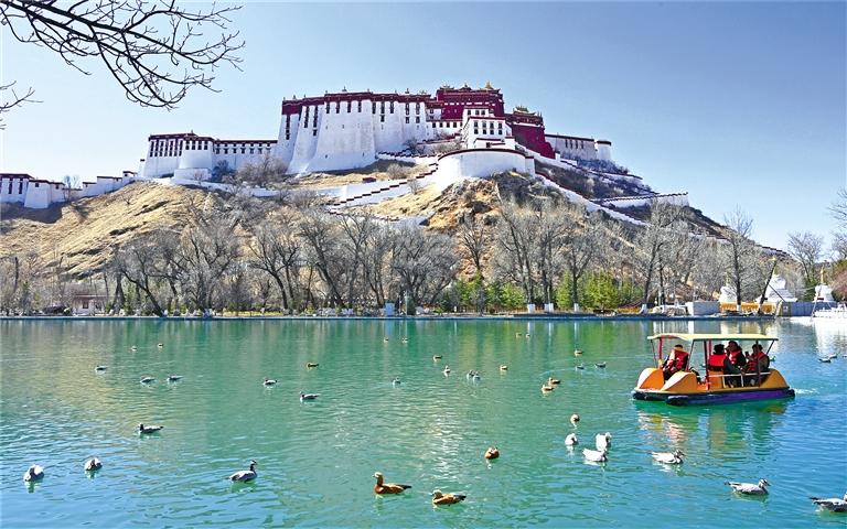 從宗角祿康公園拍攝的春日布達(dá)拉宮一角。新華社記者 丁增尼達(dá) 攝