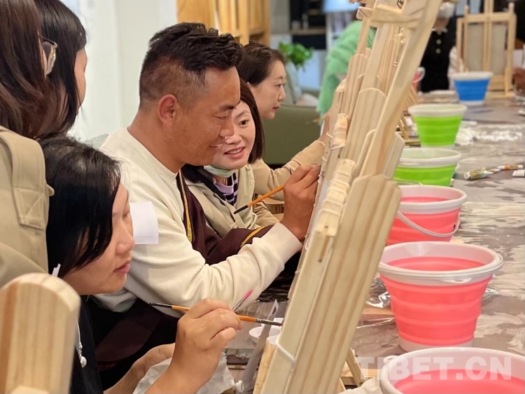 圖為成都社區(qū)居民參與郎卡杰唐卡體驗(yàn)活動(dòng)