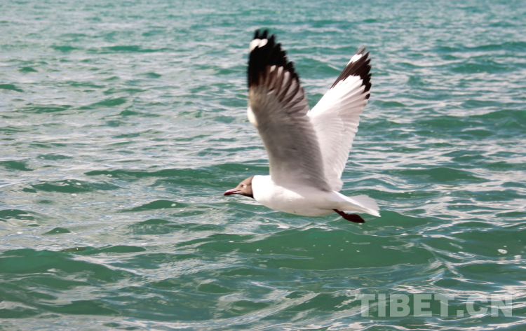 圖為翱翔在班公湖上的棕頭鷗 攝影:劉莉