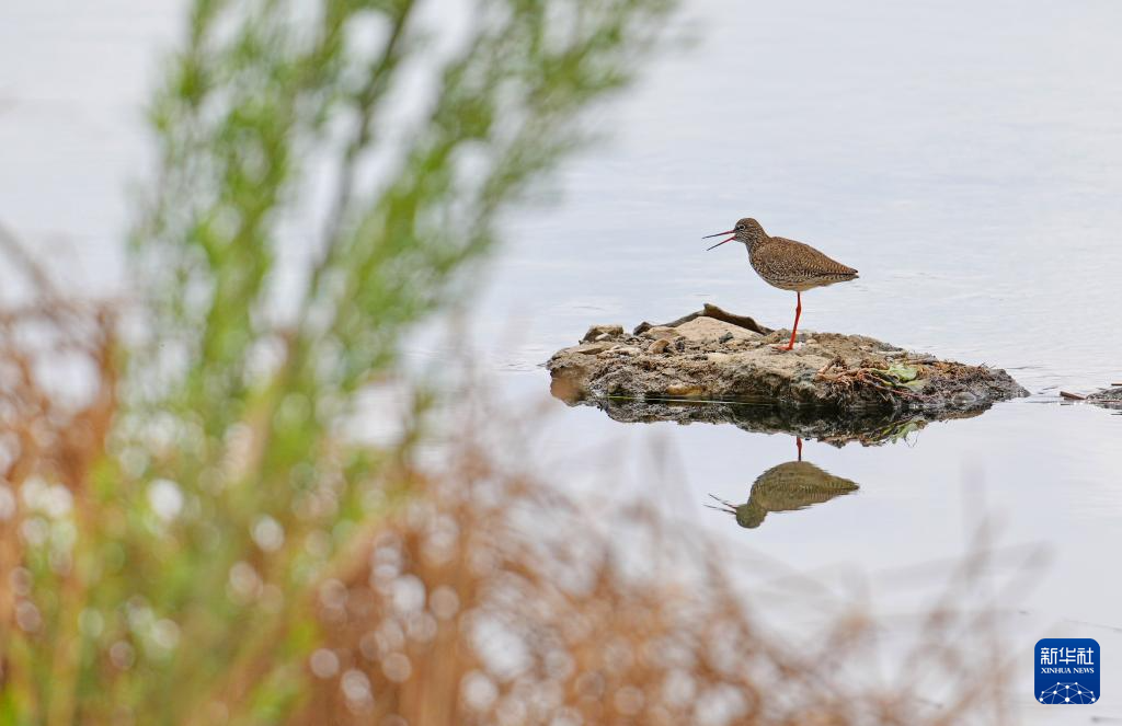拉魯濕地里的紅腳鷸(5月5日攝)。新華社記者 張汝鋒 攝