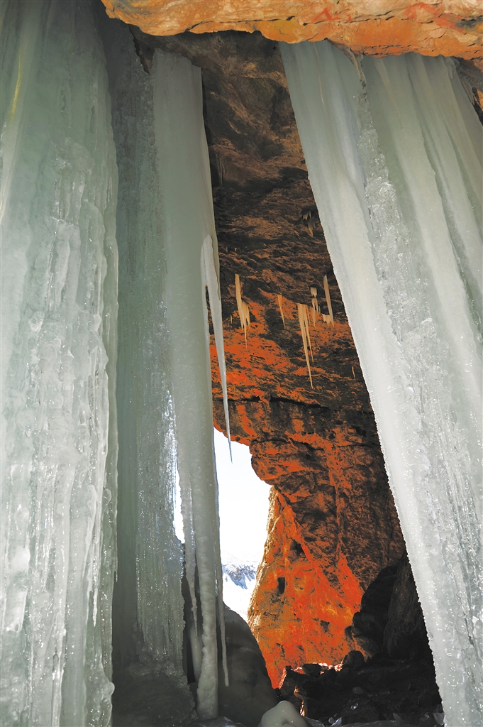 門莫溶洞在山頂,海拔4974米,有著世界上最高溶洞的美譽。望之可及,登則不易,最后幾百米碎石路尤險。溶洞呈豎井式,洞底深幽,直達地心深處;洞口開闊,一條條冰簾垂天際,透過山頂洞口遠(yuǎn)觀地球之巔,仿佛我們這些“山頂洞人”透過這門莫之眼,也可參天地悟古今,瞬間將剛才登山的肺腑翻騰忘卻于腦后。