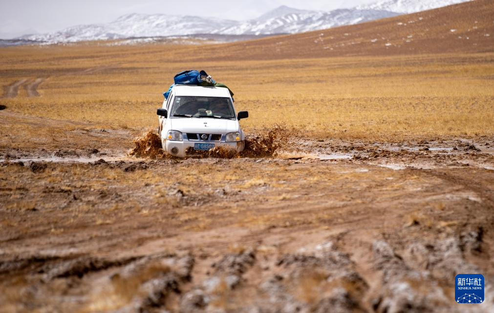 野生動物專業(yè)管護(hù)隊員冒著風(fēng)雪趕到無人區(qū)深處的布查玉管護(hù)站(5月7日攝)。新華社記者 姜帆 攝 ??