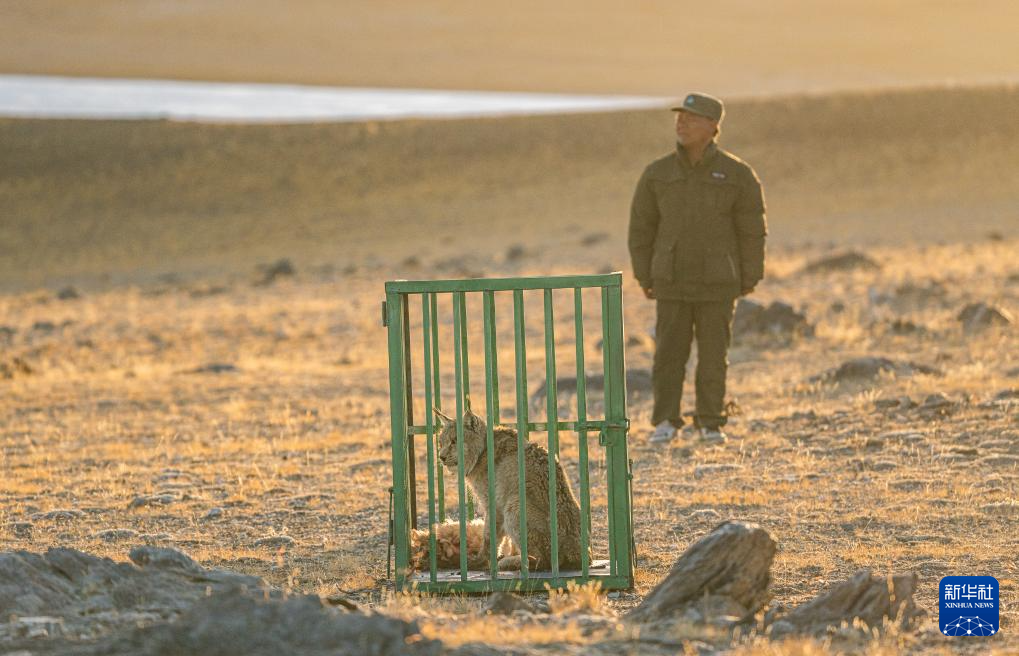 ??野生動物專業(yè)管護(hù)隊員準(zhǔn)備將一頭猞猁放歸自然(5月12日攝)。新華社記者 丁增尼達(dá) 攝