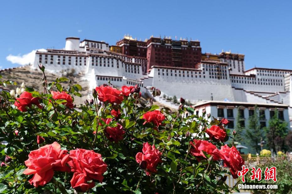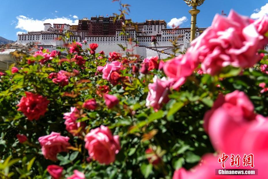 拉薩布達拉宮腳下綠化帶中盛開的月季?! ?/p>