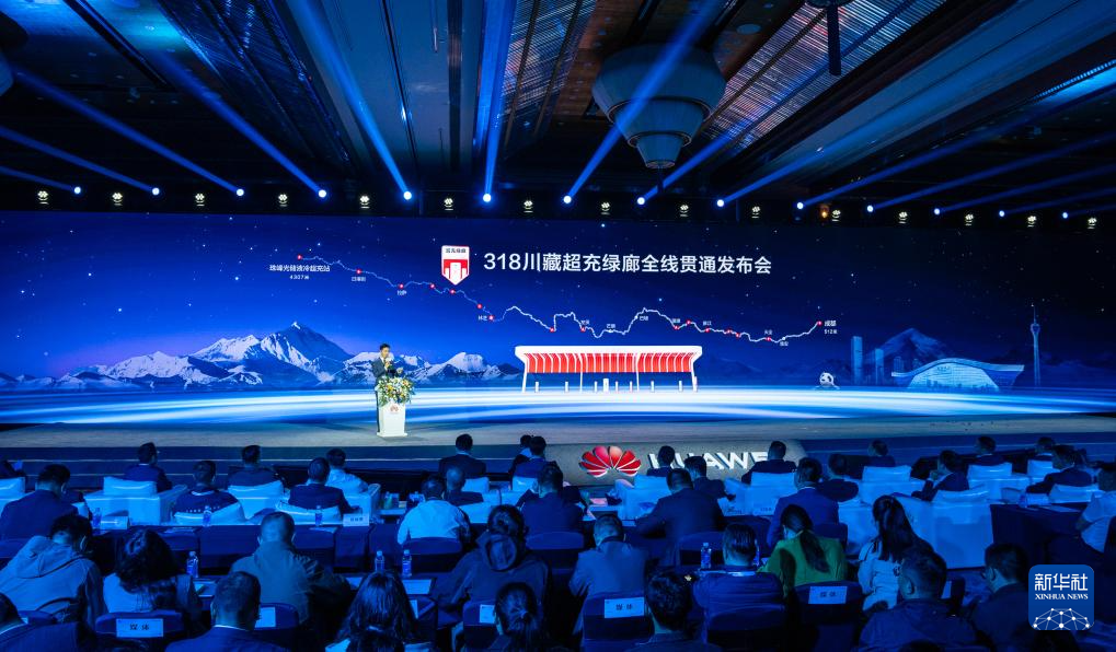 9月24日拍攝的318國道川藏超充綠廊全線貫通發(fā)布會現(xiàn)場。新華社記者 丁增尼達(dá) 攝