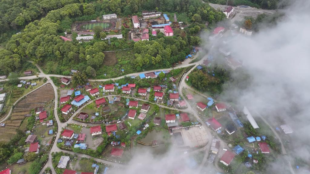 這是墨脫縣達(dá)木珞巴民族鄉(xiāng)的鄉(xiāng)村道路(無(wú)人機(jī)照片,4月23日攝)。新華社記者 姜帆 攝