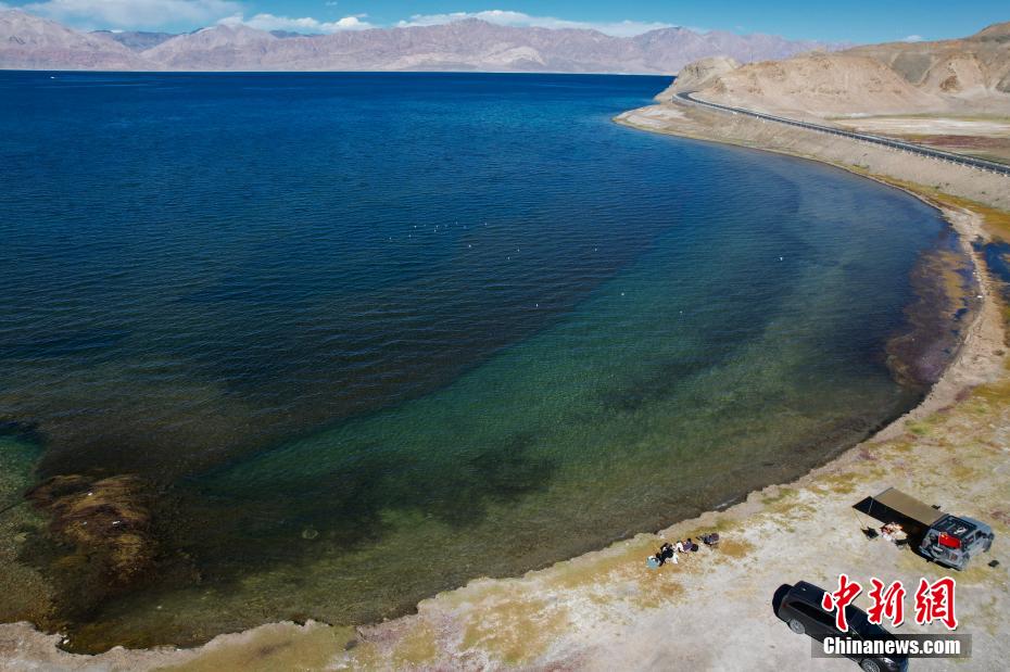 10月4日,游客在班公湖邊休閑露營?!笆弧眹鴳c假期,不少游客來到西藏日土縣班公湖游玩。(無人機(jī)照片)中新社記者 崔楠 攝