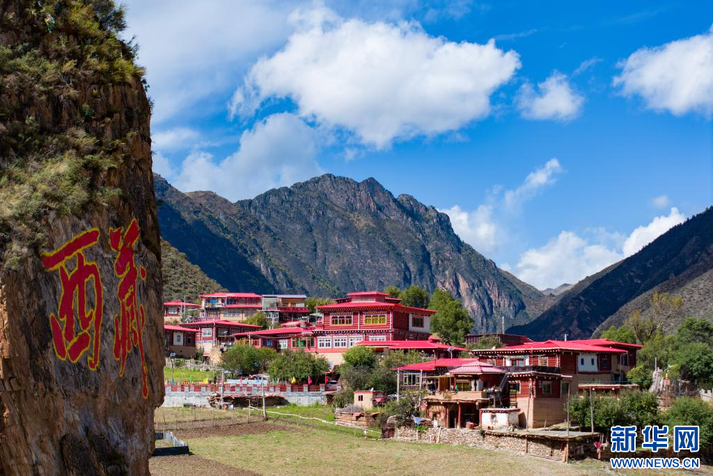 10月21日拍攝的“西藏解放第一村”昌都市江達(dá)縣崗?fù)写宀厥綐欠浚o(wú)人機(jī)照片)。新華網(wǎng) 旦增努布 攝