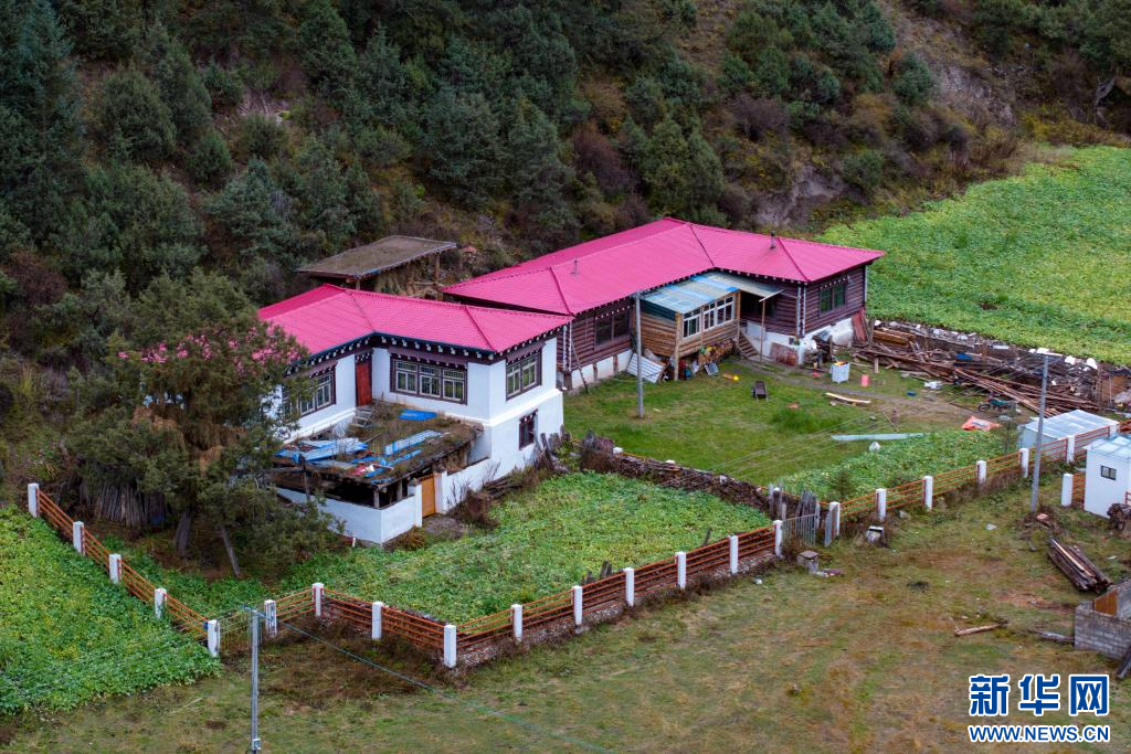 10月21日拍攝的“西藏解放第一村”昌都市江達縣崗?fù)写宕迕玻o人機照片)。新華網(wǎng) 旦增努布 攝