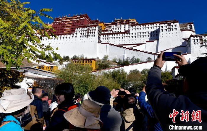 圖為11月1日,游客在布達(dá)拉宮德央夏廣場拍照。中新社記者 李林 攝