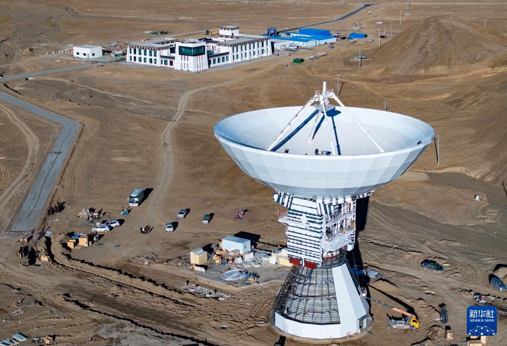 建設中的日喀則40米射電望遠鏡(無人機照片,11月7日攝)。新華社記者 姜帆 攝 ??