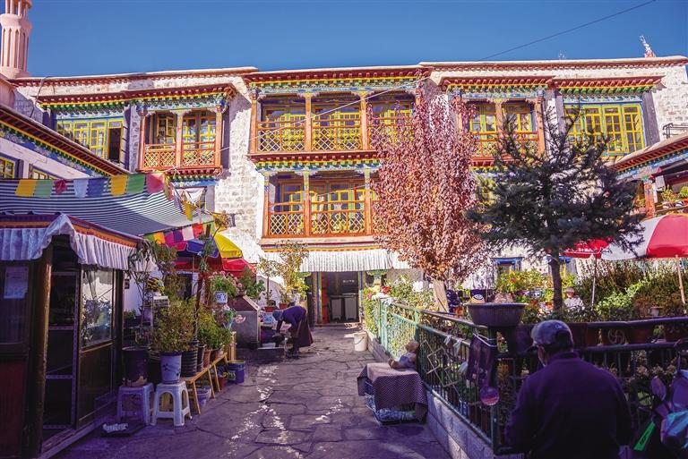 初冬時節(jié),漫步在大院內(nèi),金色的枝葉取代了夏日的繁花,裝點著這座古樸的建筑。陽光下,精美的雕刻和絢麗典雅的彩繪等藝術(shù)作品,以及咖啡的香醇,共同營造出一個寧靜而雅致的空間,耳畔隱約傳來鬧市的喧囂,使得大院內(nèi)的時光顯得格外閑適…… 文/記者 德吉央宗 德吉曲珍 圖/記者 貢曲羅杰