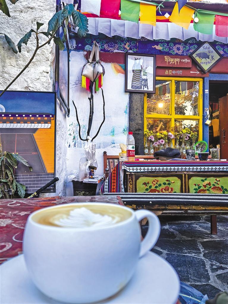 離開曲蘇大院,記者來(lái)到了另一個(gè)取景地—貢桑孜大院。與曲蘇大院相比,貢桑孜大院則顯得更加現(xiàn)代和時(shí)尚。走進(jìn)大院,就能聞到醇厚的咖啡香氣,院子的角落里有一家咖啡店,這家咖啡店是旦增格桑和朋友共同經(jīng)營(yíng)的。
