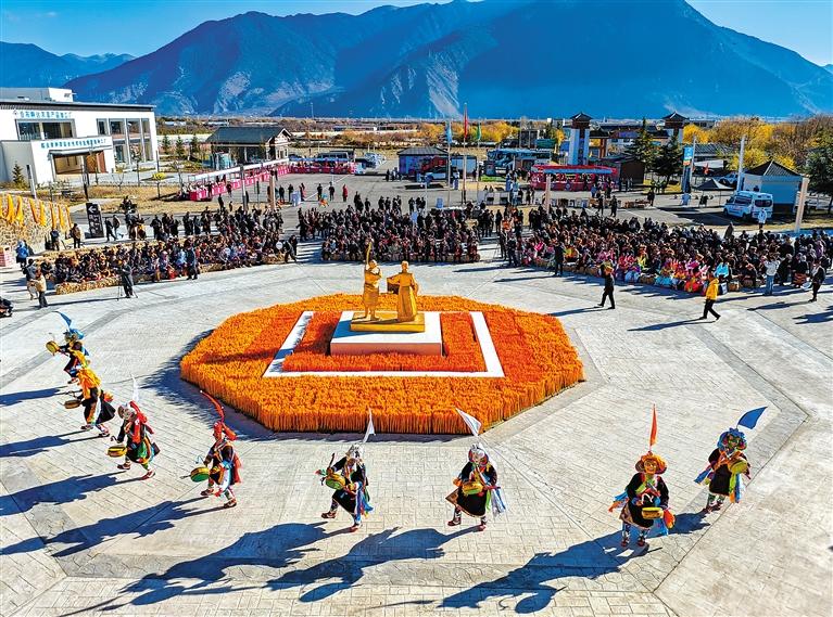 來自貴州安順的布依族非遺傳承人向立高說:“這是我第一次來到西藏,很高興能把家鄉(xiāng)的布依族《地戲》表演帶給大家。這里風景美如畫,鄉(xiāng)村建設得非常好,我真切感受到了藏族兄弟姐妹的熱情好客,感受到了西藏農村的蓬勃生機,我要把這里的發(fā)展經驗和獨特的體會帶回貴州,希望我們兩地各民族兄弟姐妹多來往多交流,請大家有空到貴州安順阿歪寨做客,真心祝愿大家工布新年快樂,扎西德勒?!?/p>