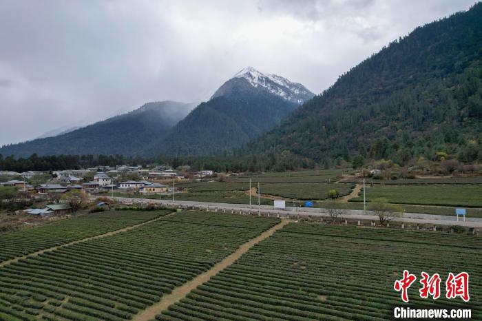 12月13日,西藏林芝波密縣易貢茶場(chǎng)雪山、茶田風(fēng)光。(無(wú)人機(jī)畫(huà)面)中新社記者 江飛波 攝