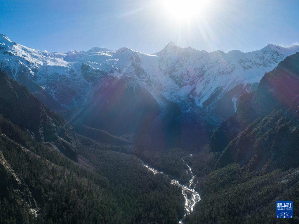 這是12月17日拍攝的西藏林芝市波密縣的朗秋冰川(無(wú)人機(jī)照片)。新華社記者 丁汀 攝