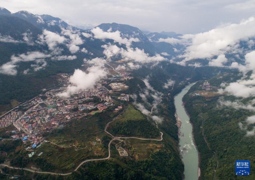 這是12月22日拍攝的墨脫縣風(fēng)光(無人機(jī)照片)。新華社記者 丁汀 攝