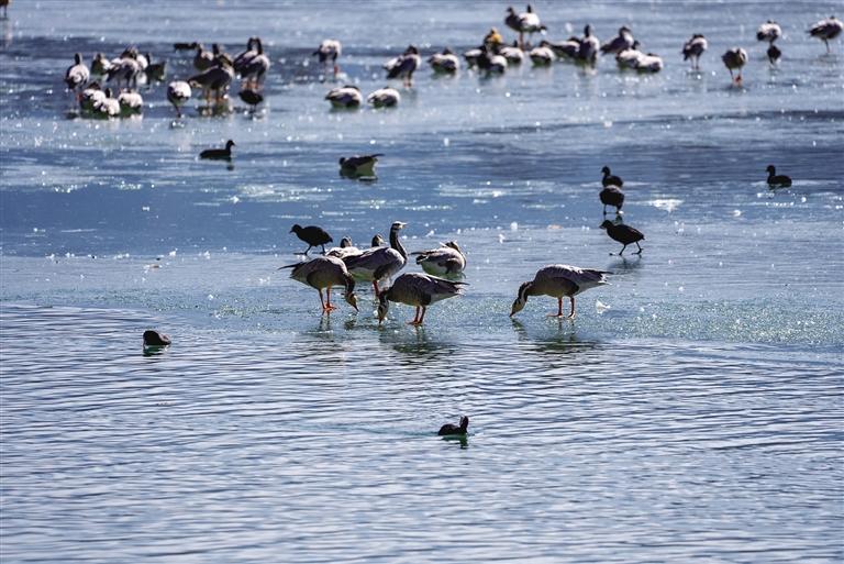 黑頸鶴,作為國家一級(jí)保護(hù)動(dòng)物,其數(shù)量的增加尤為令人欣喜。它們身姿優(yōu)雅,在濕地中翩翩起舞,宛如大自然的精靈。而斑頭雁和赤麻鴨也成群結(jié)隊(duì)地在水中暢游,歡快的叫聲回蕩在空中,為濕地增添了無限的生機(jī)與活力。