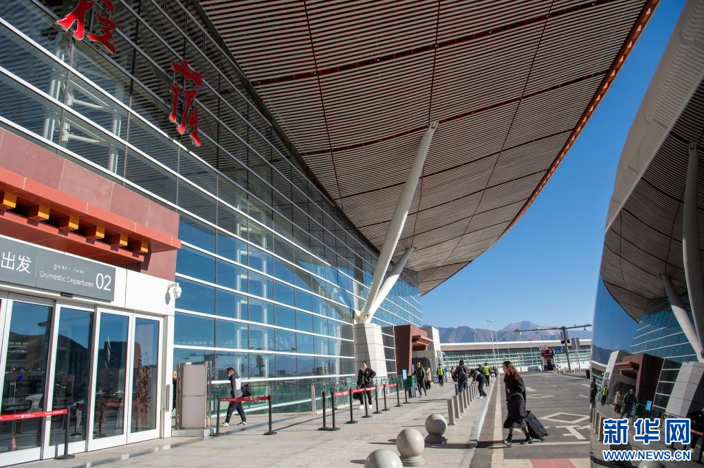 1月14日拍攝的拉薩貢嘎國際機場出發(fā)口。新華網(wǎng) 旦增努布 攝