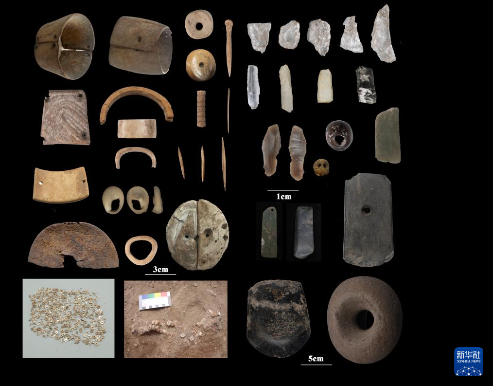 瑪不錯遺址第一期出土遺存典型骨器、石器、蚌器、滑石珠等。(圖片由西藏自治區(qū)文物保護研究所提供)