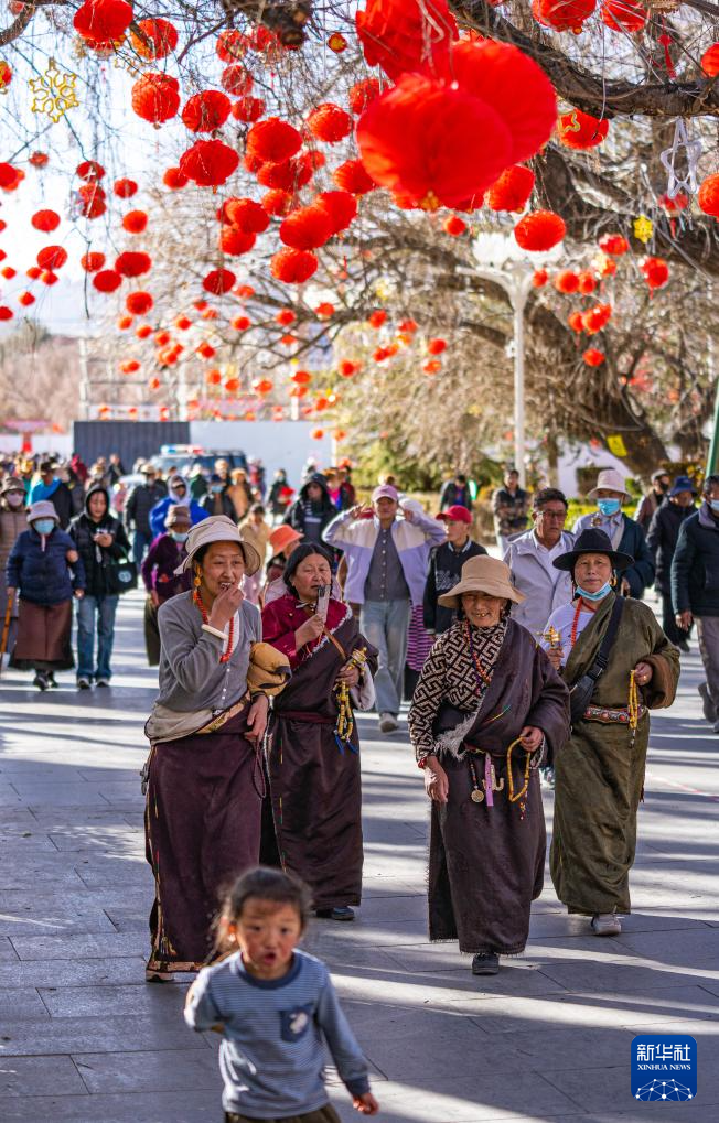 新春佳節(jié)期間,拉薩市在城區(qū)布置了許多春節(jié)裝飾,并開展豐富多彩的文娛活動。當(dāng)?shù)厝罕姾陀慰吐健叭展庵恰?,感受濃濃年味?! ??