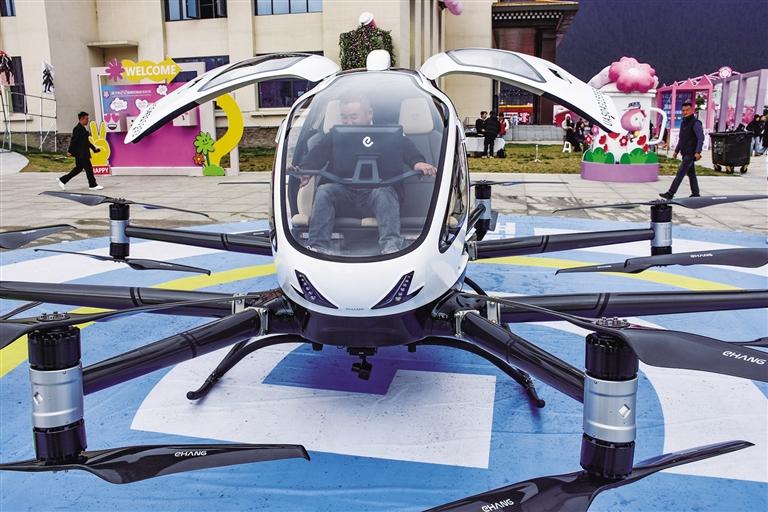 游客靜態(tài)體驗(yàn)載人無人機(jī)E-VTOL。