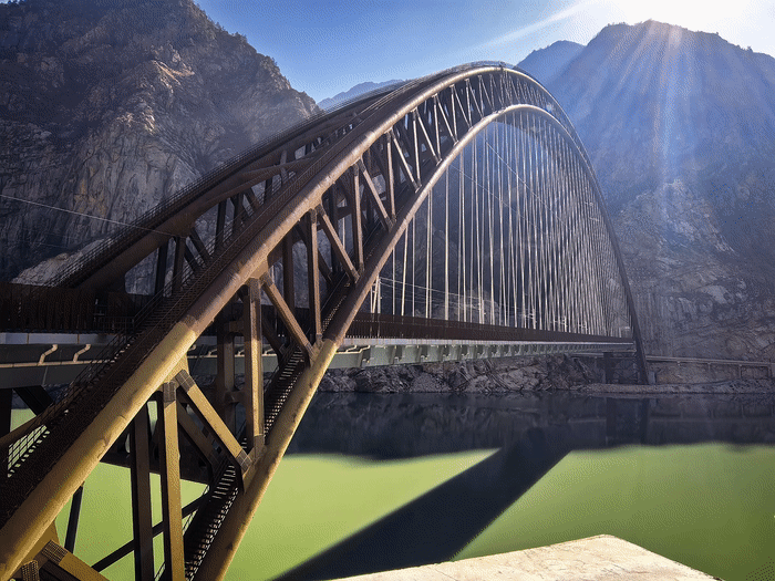 在山南段,列車會(huì)穿過藏木特大橋,這是目前世界海拔最高、跨度最大的鐵路鋼管混凝土拱橋,橋下江水如綢緞般在峽谷中流淌,兩岸峭壁巍峨聳立。