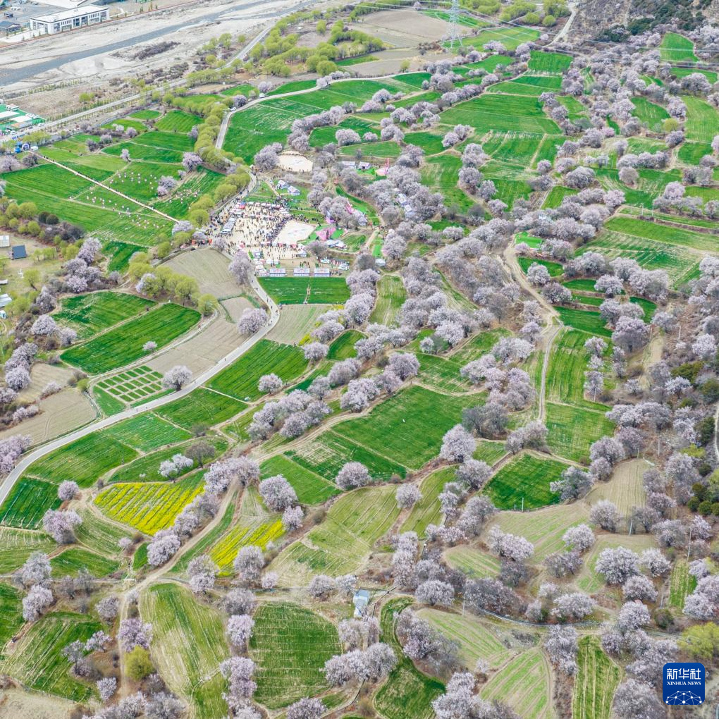 這是林芝第二十二屆桃花旅游文化節(jié)巴宜區(qū)分會(huì)場(chǎng)所在地朵當(dāng)村(無人機(jī)照片)。新華社記者 丁增尼達(dá) 攝
