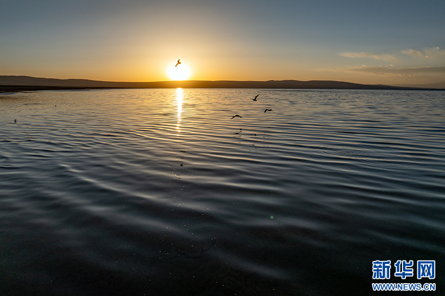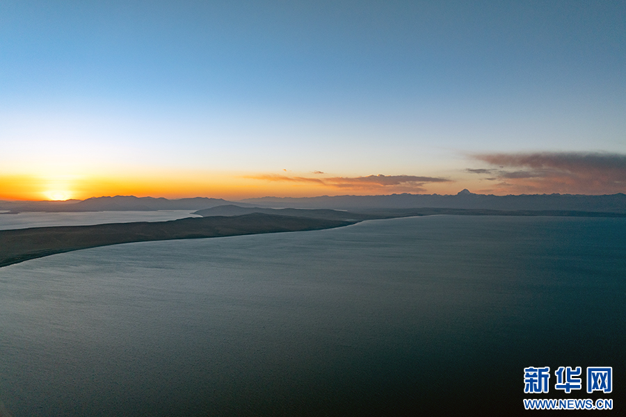 夕陽(yáng)下的瑪旁雍錯(cuò)(6月9日攝,無(wú)人機(jī)照片)。新華網(wǎng) 旦增努布 攝