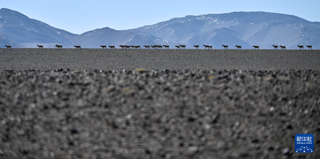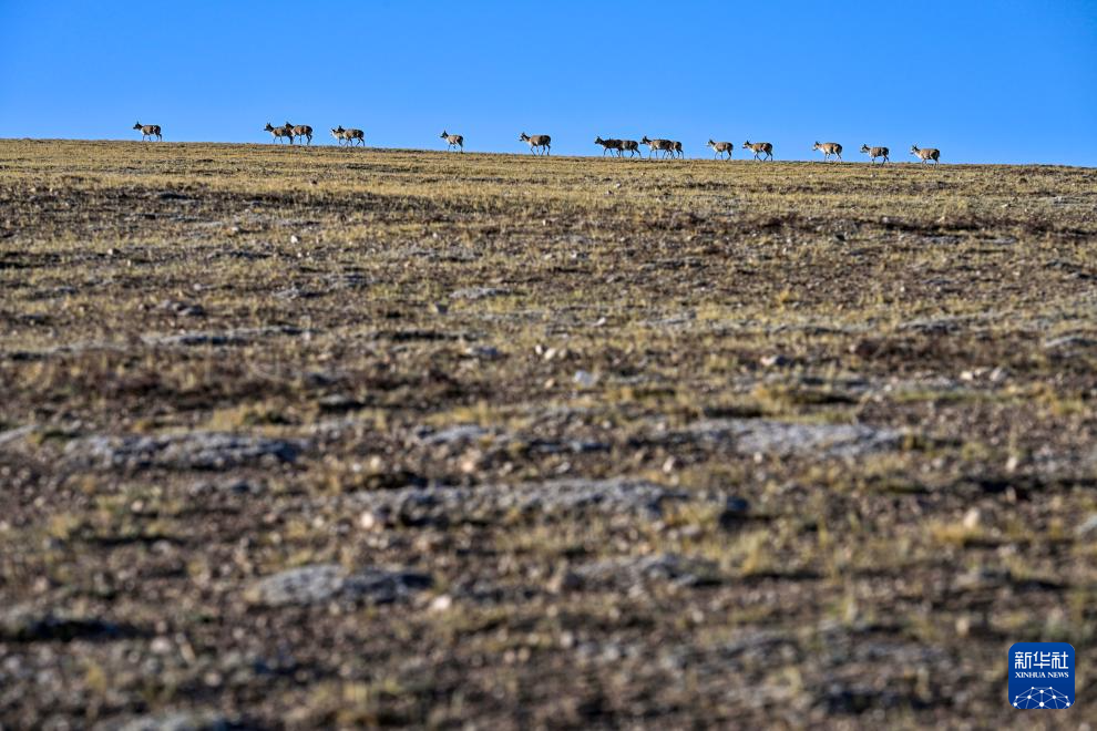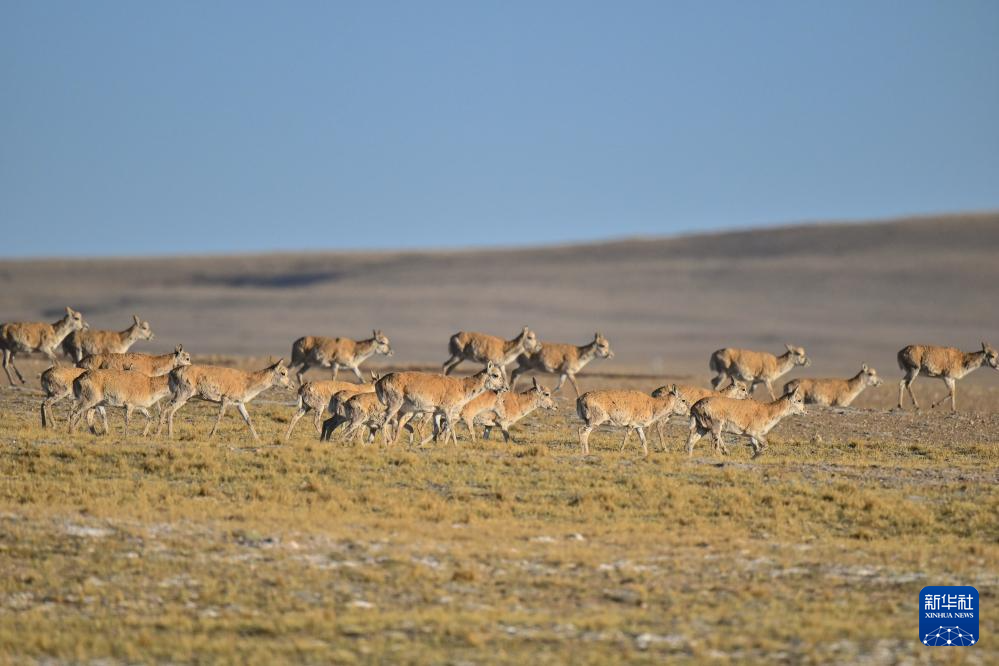 羌塘國家級自然保護(hù)區(qū)核心區(qū)繁殖遷徙路上的雌性藏羚羊群(6月10日攝)。新華社記者 姜帆 攝 ??