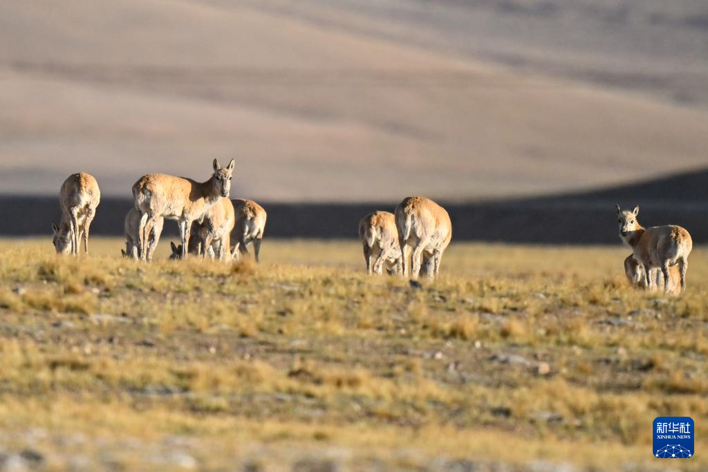 在羌塘國家級自然保護(hù)區(qū)核心區(qū)拍攝到的雌性藏羚羊群(6月10日攝)。新華社記者 旦增尼瑪曲珠 攝 ??
