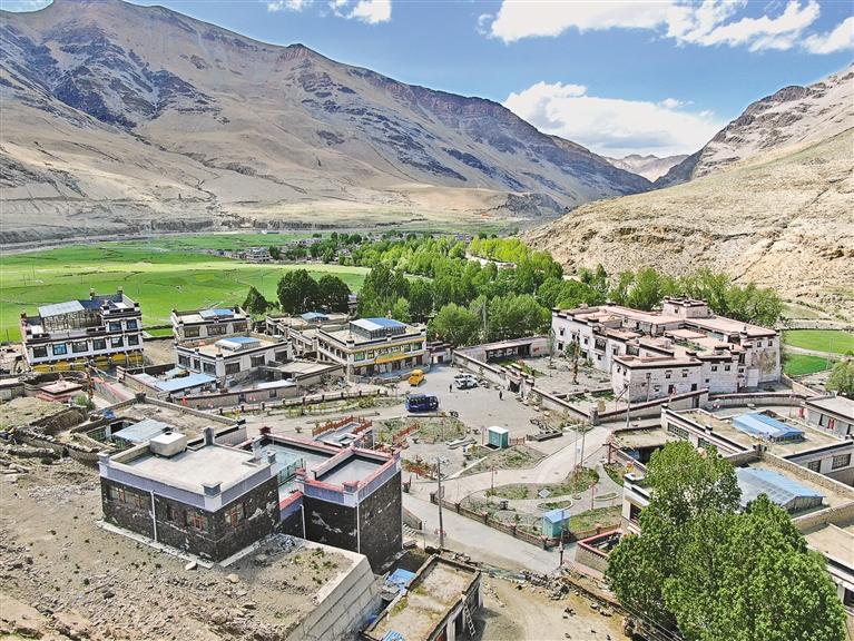 2006年起,西藏實施了農(nóng)牧民安居工程。朗巴村村民告別了昔日低矮陰暗的土坯房,住進了寬敞明亮的藏式新居,圓了“新房夢”。