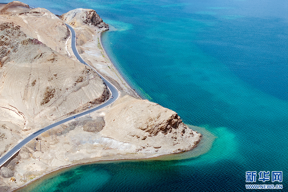鳥瞰班公湖(6月15日攝,無(wú)人機(jī)照片)。新華網(wǎng) 旦增努布 攝