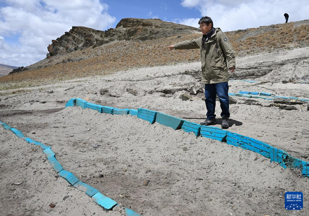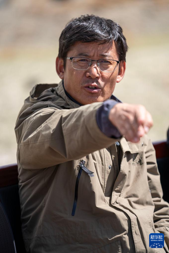 5月22日,聯(lián)合考古隊領(lǐng)隊夏格旺堆在瑪不錯遺址向記者介紹考古發(fā)掘情況。新華社記者 旦增尼瑪曲珠 攝 ??
