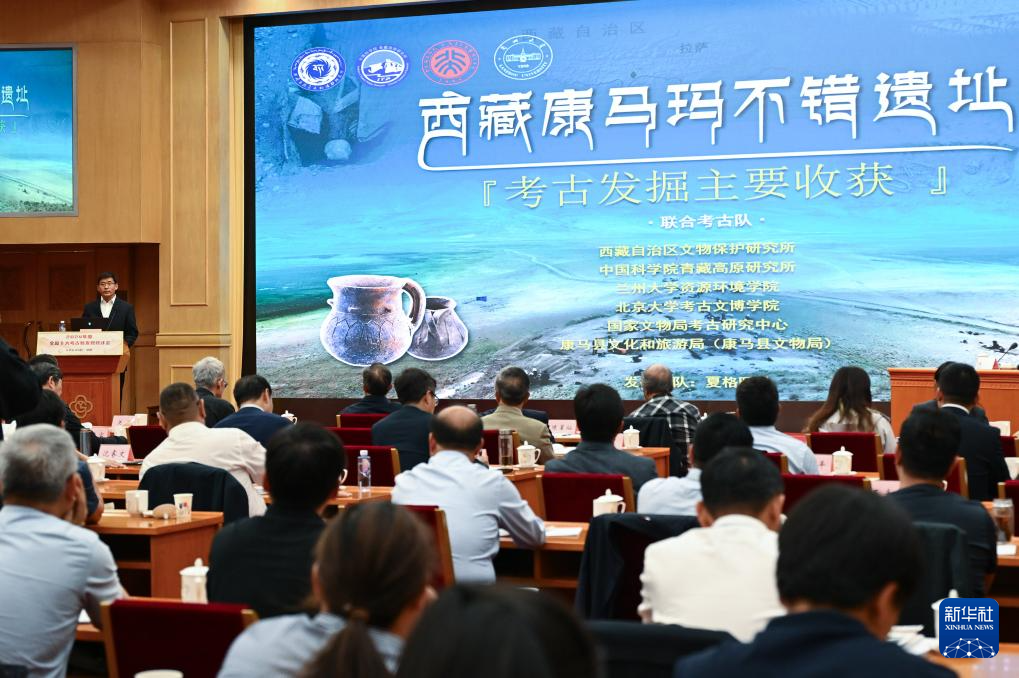 4月23日,聯(lián)合考古隊領(lǐng)隊夏格旺堆在“2024年度全國十大考古新發(fā)現(xiàn)”終評會現(xiàn)場向?qū)<覍W(xué)者和媒體介紹瑪不錯遺址相關(guān)情況。新華社記者 李賀 攝 ??