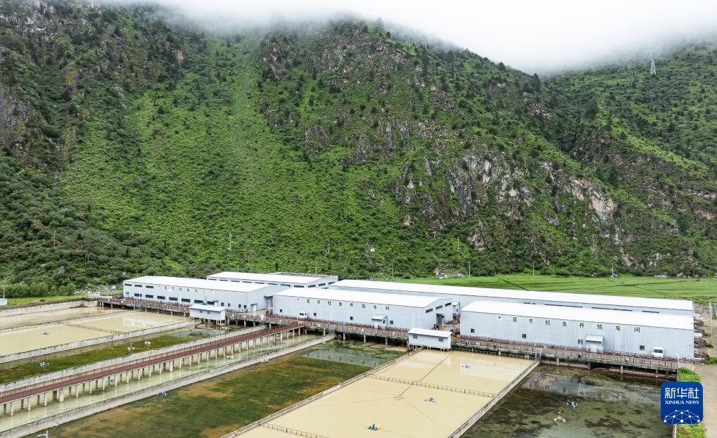 這是西藏高峰生態(tài)科技有限責(zé)任公司的亞東鮭魚養(yǎng)殖產(chǎn)業(yè)園(6月19日攝,無人機(jī)照片)。新華社記者 丁增尼達(dá) 攝 ??