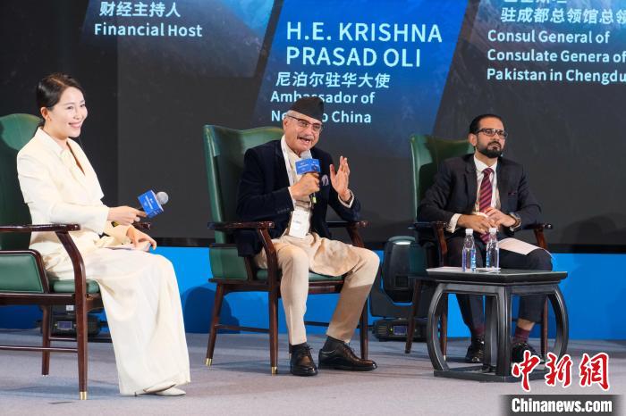 圖為6月27日,尼泊爾駐華大使(中)與巴基斯坦駐成都總領館總領事(右)在“環(huán)喜馬拉雅”企業(yè)家國際會議上參與對話活動。江飛波 攝