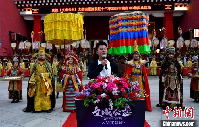 圖為《文成公主》大型實景劇第十三季演出100場慶典活動現場。李林 攝