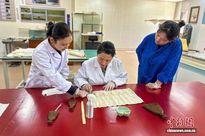 圖為8月14日,退休后的達(dá)珍(中)在西藏博物館修復(fù)室傳授檔案修復(fù)技術(shù)。(受訪者供圖)
